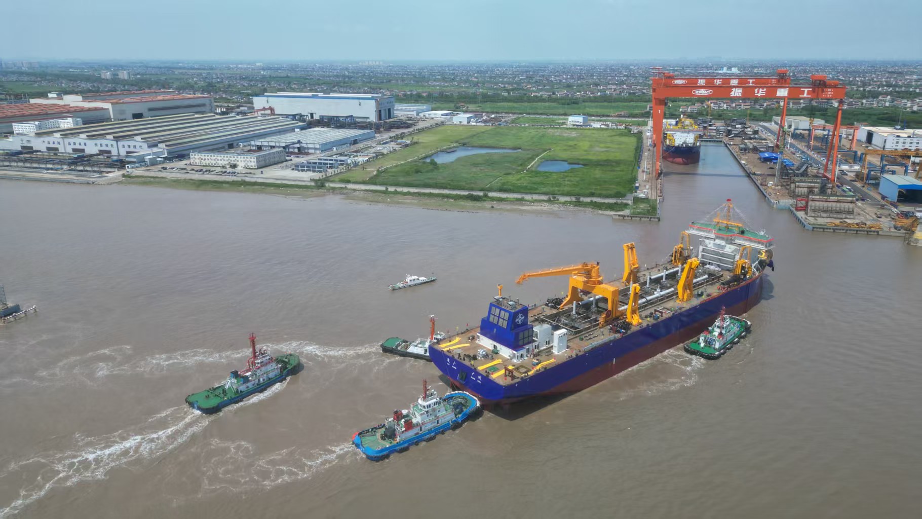 选录:我国自主筹划建造的亚洲最大耙吸挖泥船今天得胜下水。