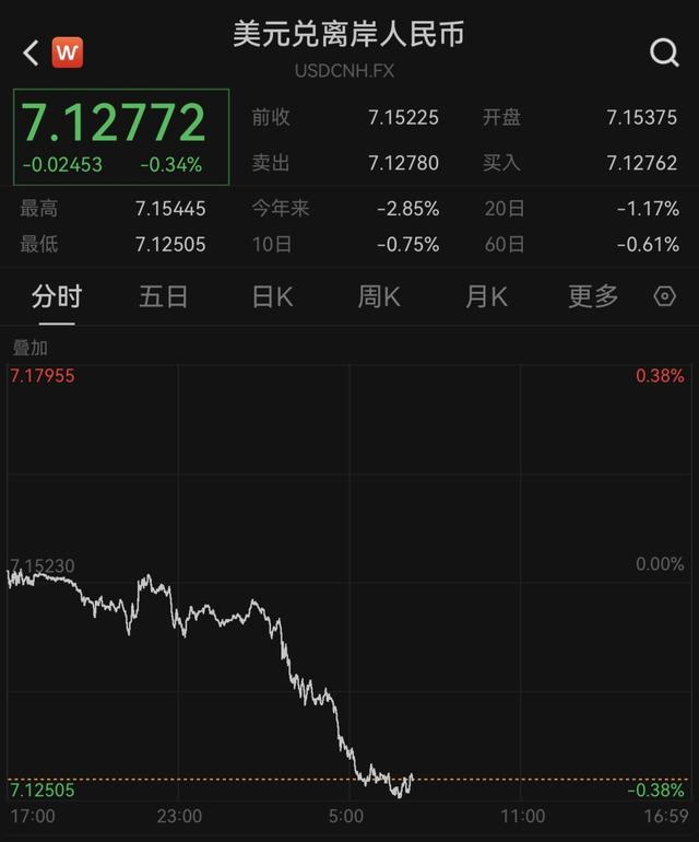 8月28日,离岸东说念主民币对好意思元汇率盘中先后升破7.15、7.14、7.13关隘,放胆发稿,最高升至7.1250,创下旧年11月7日以来的新高。