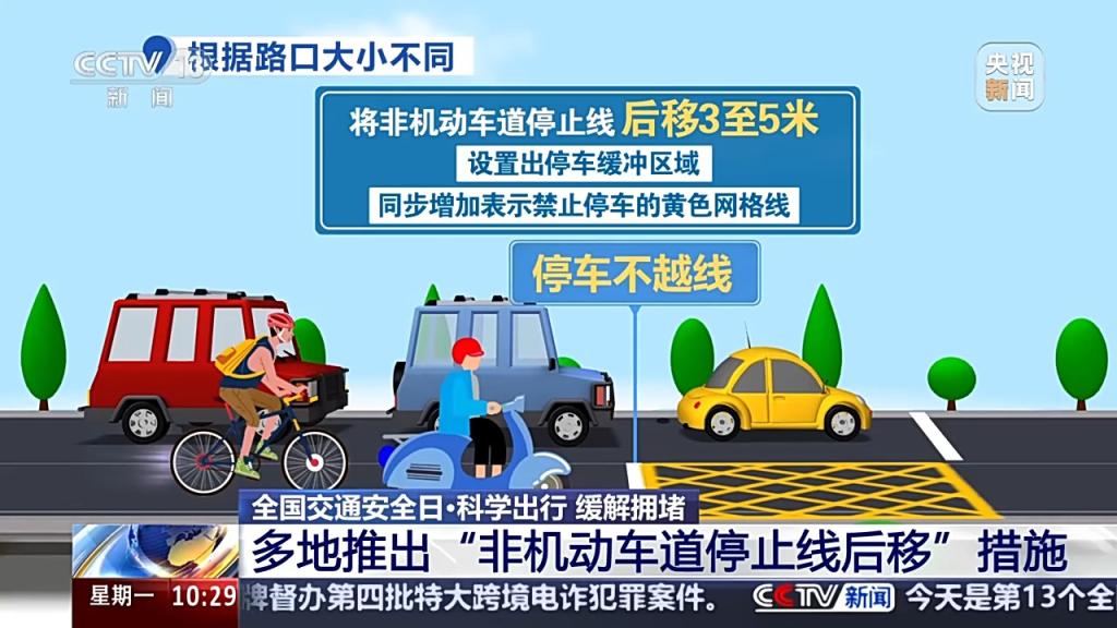 为程序路口非纯真车通行递次,减少交通事故风险,北京公安交管部门在全市领域内,试点非纯真车住手线后移贬责措施。具体来说,即是把柄路口大小不同,将非纯真车谈住手线后移3至5米,开发出泊车缓冲区域,同步增多暗示拦阻泊车的黄色网格线和“泊车不越线”教唆翰墨。