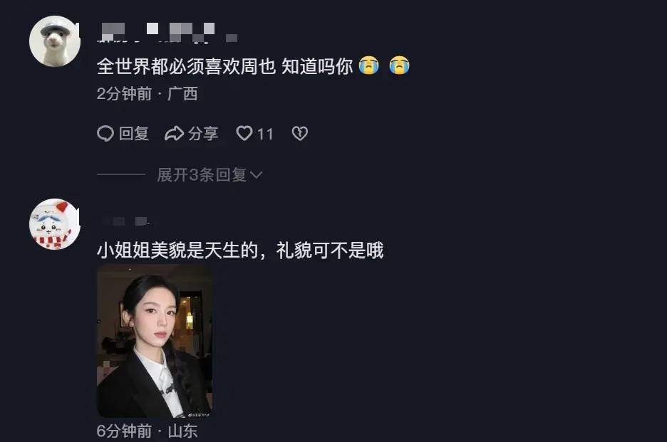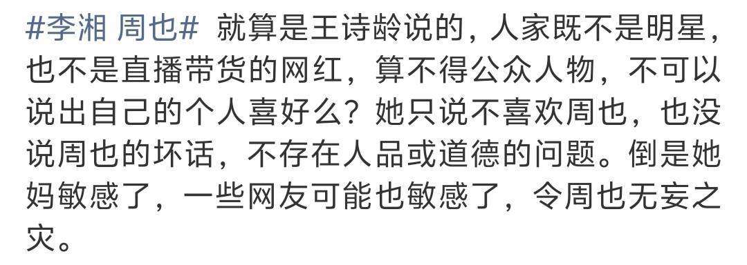 王诗龄的驳倒区一经沉沦,周也的粉丝皆纷纷跑以前留言,替偶像鸣扞拒