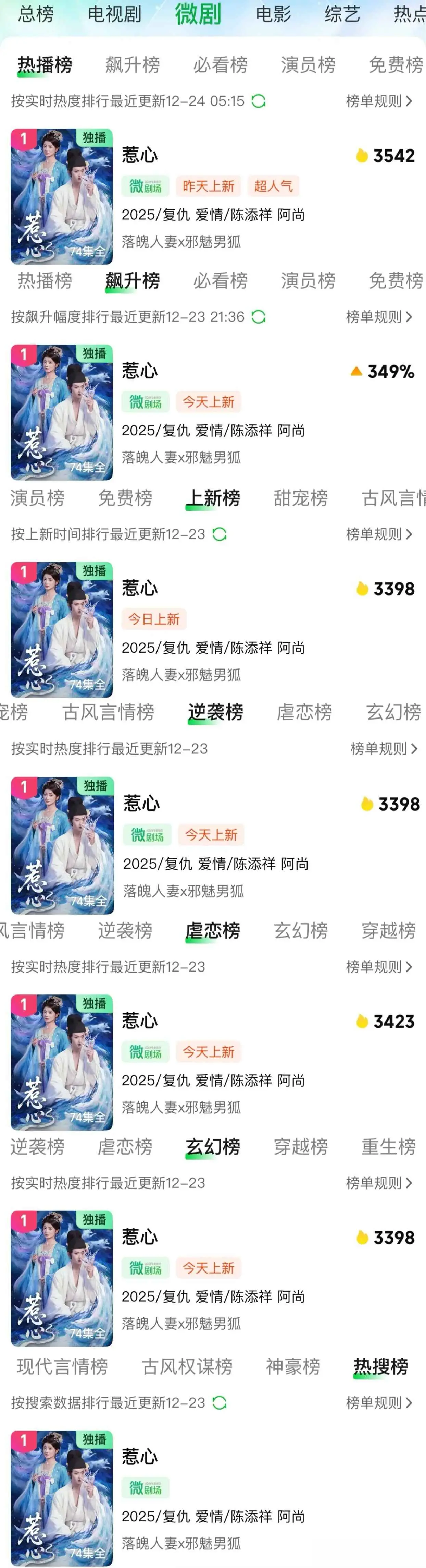 2025年12月23日,《惹心》在爱奇艺上线,首日热度冲到3600,平台七个榜单全部名纪律一,陈添和蔼演员阿尚此次是第二回配合,两东说念主热度都涨得很快欧洲杯体育,陈添祥获胜冲到演员榜第二位。