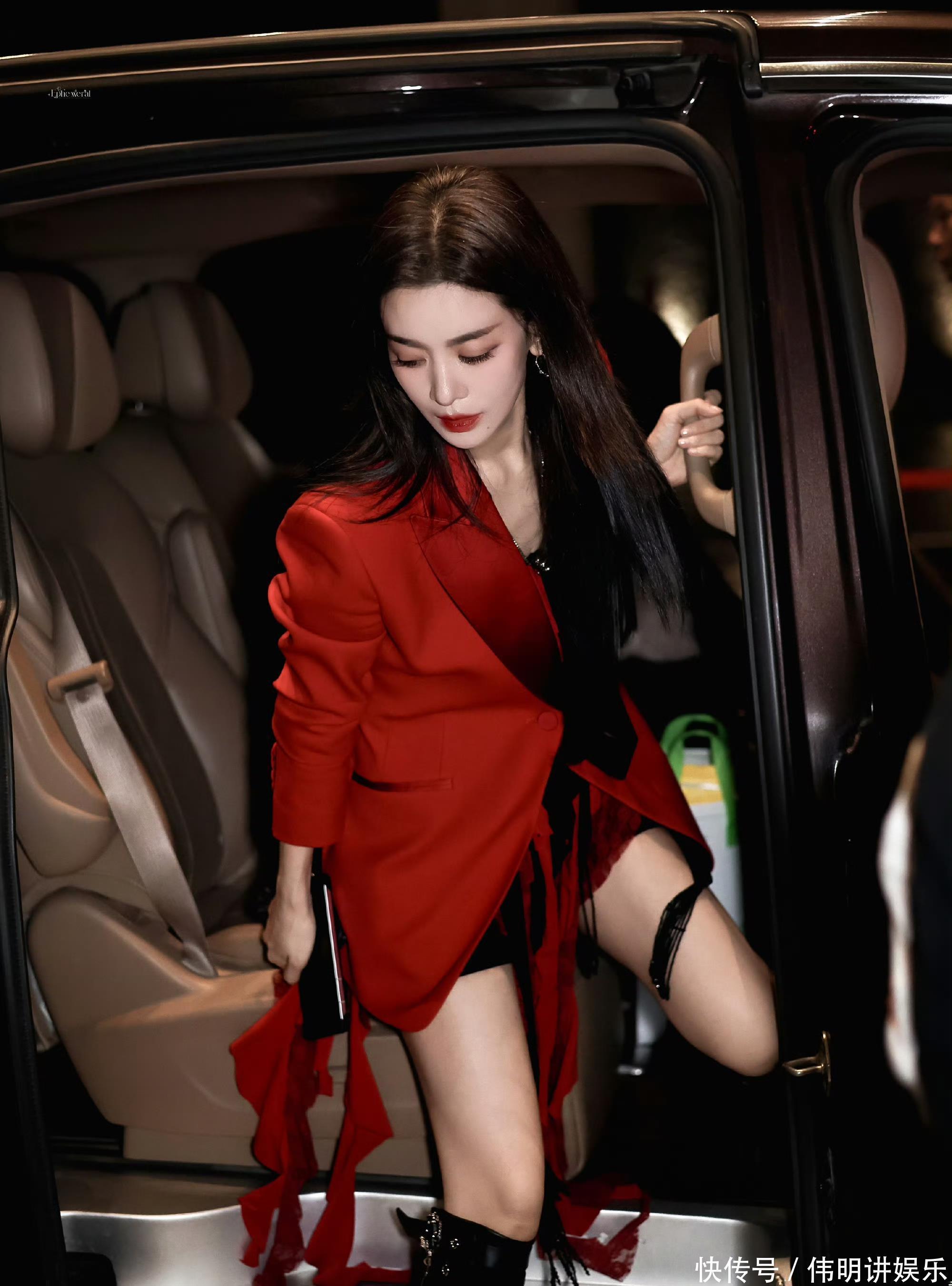 红黑经典配色被她穿出教科书级质感,战袍在灯光卑鄙转着灵动后光,翻飞裙摆藏着女性柔好意思,而玄色小腿靴的硬朗线条又注入强势气场,一柔一刚的冲突好意思学顷刻间拉满张力。下车时她抬步生风,目光冷冽确定,抬手整理裙摆的手脚慵懒又干练,硬生生走出了“女特工出任务”的飒爽感,隔着屏幕齐能感受到扑面而来的女王气场。