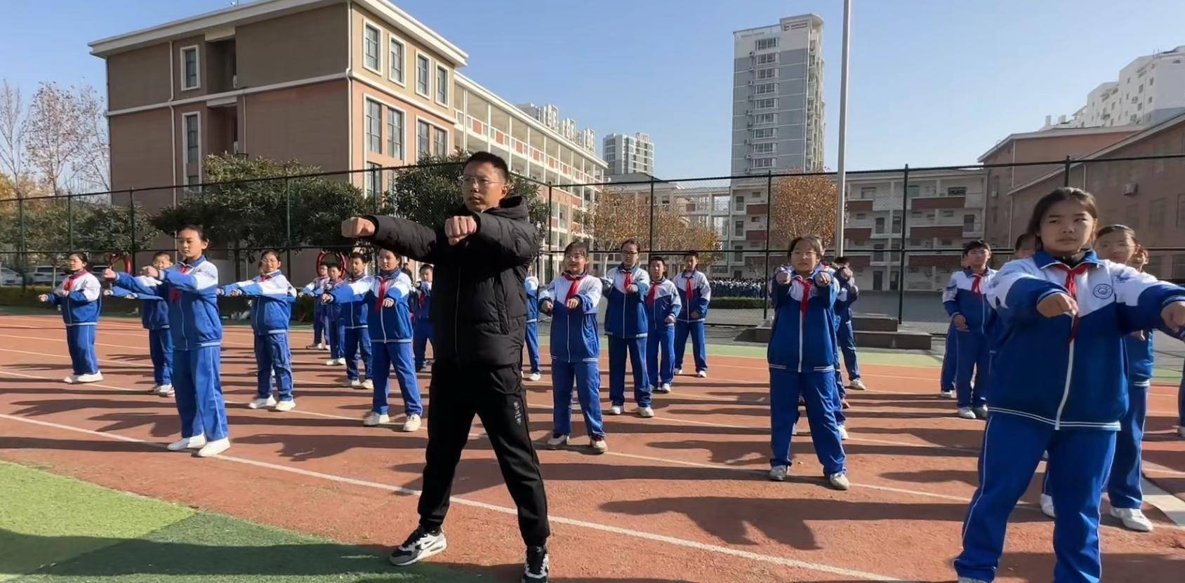 大课间是凝纠合膂力量的“高光时代”。身着整皆顺服的学生们迎着向阳驰驱,圭表一致、标语嘹亮,既展现出少年繁茂的人命力,更在集体通顺中矫健躯壳、凝合心力,完成“有体有心”的成长更始。
