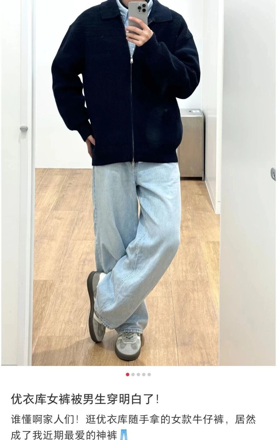 直到某个下昼,他在优衣库女装区拎起了一条高腰直筒裤。原来仅仅看版型差未几,想要碰红运,没预见后果却稀奇惊艳。和宽敞选定中低腰盘算推算的男裤不同,女裤的高腰剪裁隐秘进步了腰线,再配合后腰处位置更高的口袋盘算推算,最大化地修饰了身段比例。原来80cm的腿长,看上去足有一米二。
